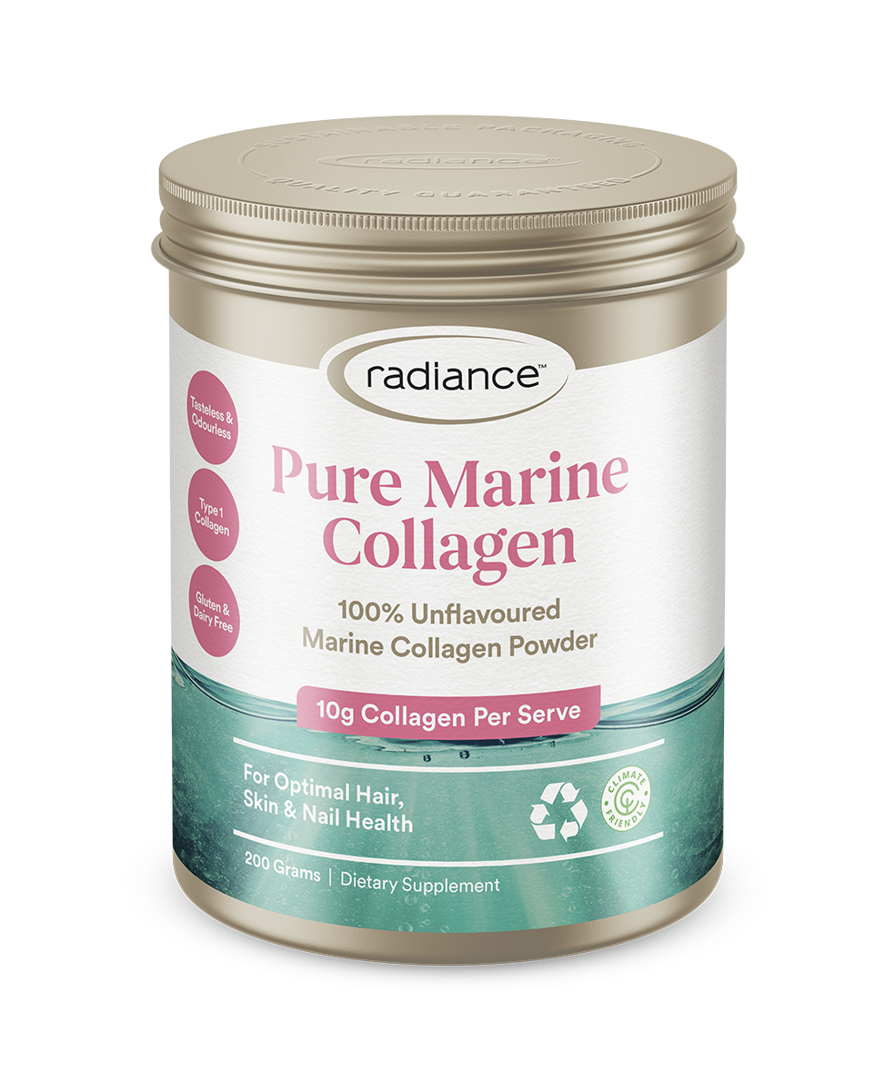 Radiance Pure Marine Collagen Powder provides a high dose of scientifically researched marine collagen peptides. Proven to support collagen production, Radiance Pure Marine Collagen targets the signs of ageing and supports firm, smooth skin.