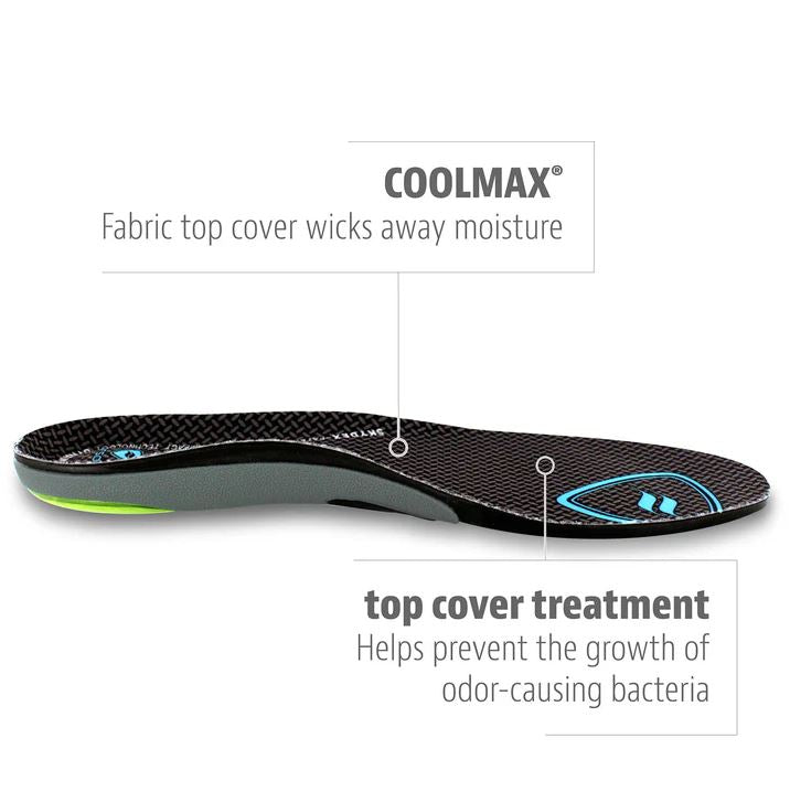The Sof Sole Airr Orthotic Insole features an encapsulated air chamber in the heel and polymer gel in the forefoot for shock absorption. Combined with a reinforced stability plate in the arch and heel, the Airr Orthotic enhances motion control and support making it ideal for customers with low to neutral arch types.